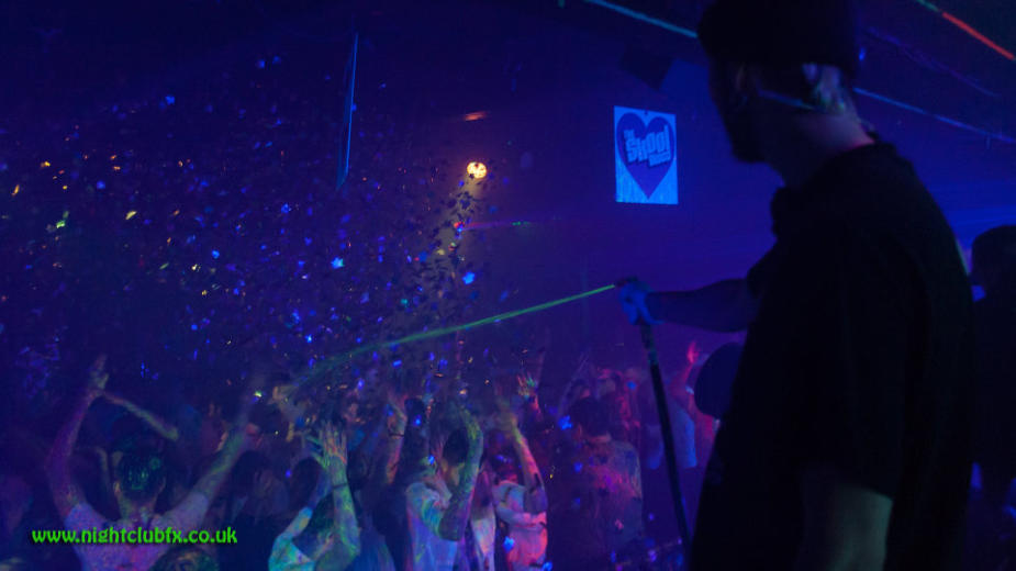 We have several Co2 Freeze jet cannons available for hire, it is a massive handheld Bazooka that fires Co2 in to the crowd.